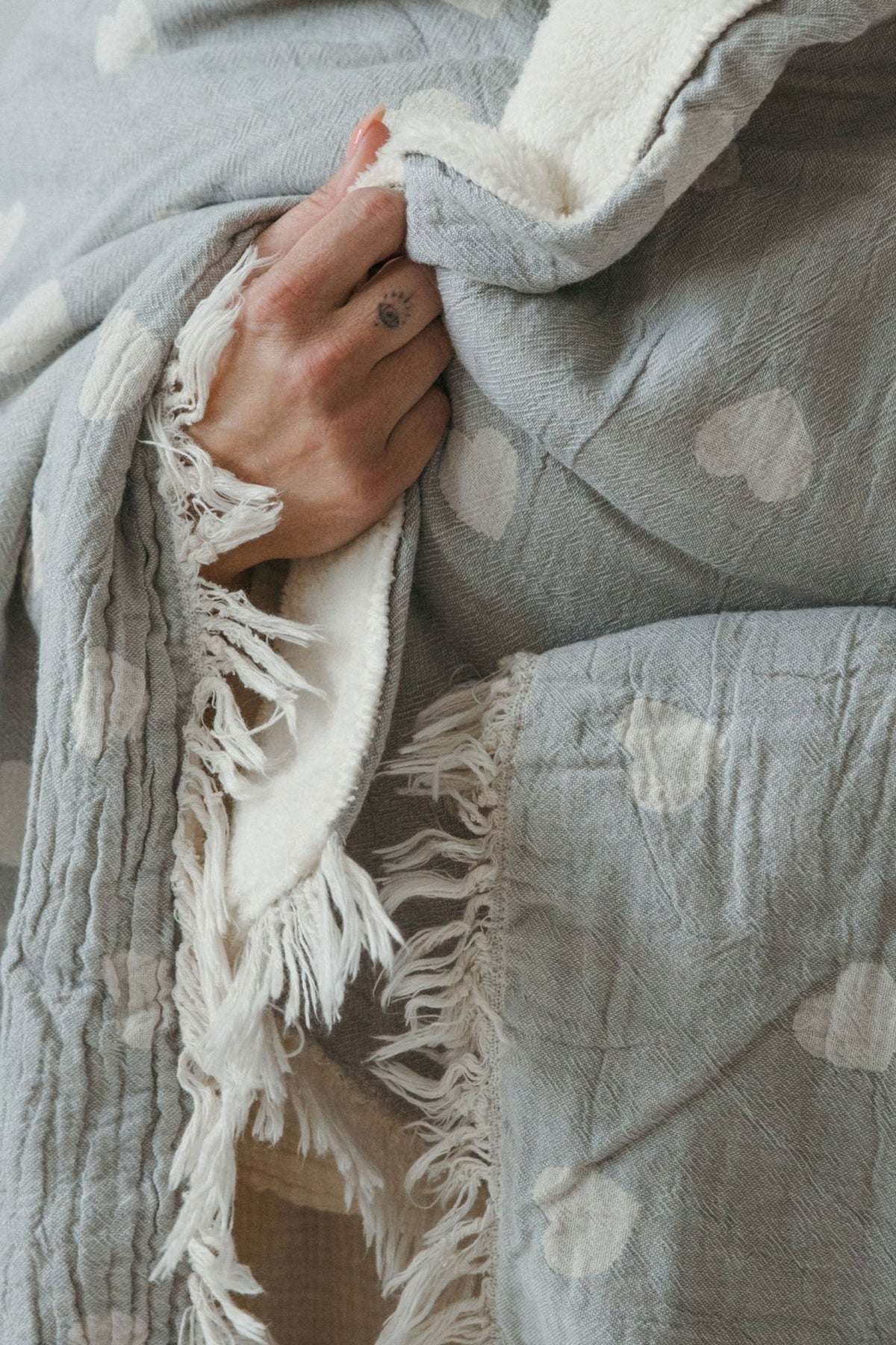 Notre coup de coeur de l'année ! Ce jeté multifonctionnel est fait de coton turc jacquard, de petites franges et d'une doublure en polar confortable. Il s'agit d'une couverture artisanale unique et équitable au toucher luxueux et ultra-doux. Un latte chaud, un bon roman, une chandelle et vous aurez le meilleur moment cocooning de votre vie !